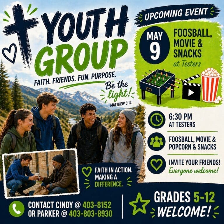Youth Night – Movie, Popcorn, Foosball This is a hangout night to chill, play foosball, watch a movie,…